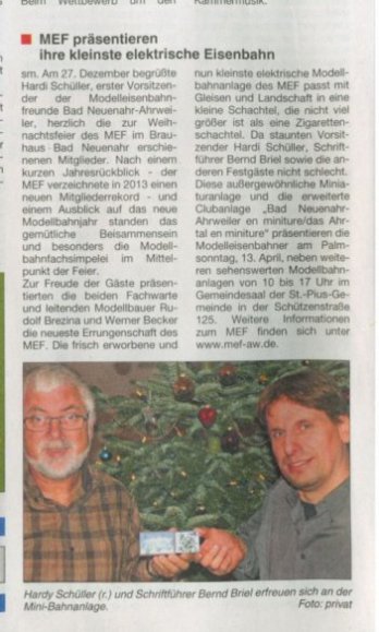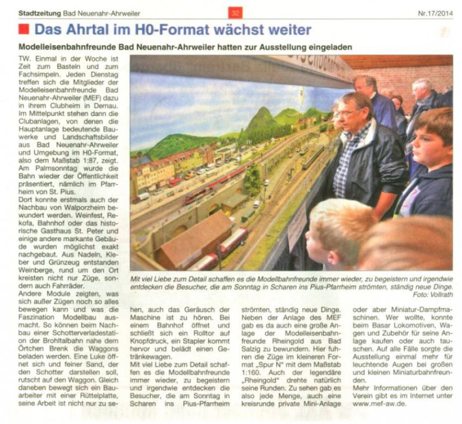 Für den MEF war dies eine Bestätigung für das heimatverbunde Anlagenkonzept und Anregung / Motivation die Heimatanlage 'Bad Neuenahr-Ahrweiler und das Ahrtal en miniatur' zu erweitern.