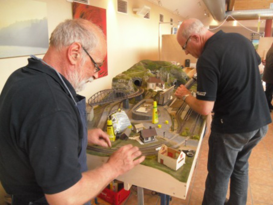 Einerseits wollten wir gerade mit diesen kleinen Anlagen zeigen, was man alles auf kleinstem Raum modellbahntechnisch bauen kann, andererseits wollten wir mit der kostenlosen Beteiligung (wir erhalten kein Honorar und zahlen keine Standgebühr) unsere Verbundenheit zur einheimischen Geschäftswelt unterstreichen. Letztendlich ist es die einheimische Geschäftswelt, die unseren Verein mit fördert und uns somit die Basis gibt, um im Rahmen der Gemeinnützigkeit unsere Heimatanlage überhaupt bauen zu können.