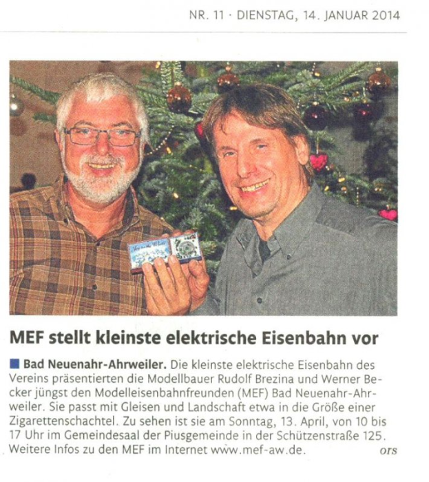 Zu sehen sind, wie auch weiter unten im Bricht im Grafschafter, nicht die Modellbauer Becker und Brezina, sondern rechts unser 1. Vorsitzende, Hardi Schüller, und links der Schriftführer des MEF, Bernhard Briel.