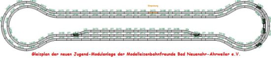 Diese wird im Gegegensatz aller anderen Clubanlagen nicht mit dem Märklin-K-Gleis sondern mit dem C-Gleis gebaut. Eine einfachere Handhabung ist einer der Vorteile dieses Gleises. Selbstverständlich gehört die Digitaltechnik auch zu dieser Anlage, die vom Gleisplangrundriss her einen einfachen 'Hundeknochen' darstellt, in dessen Zentrum sich dann der Bonner Bahnhof, ein kleines Dorf und ein kleiner Güterschuppen mit Rangierbereich befinden werden.