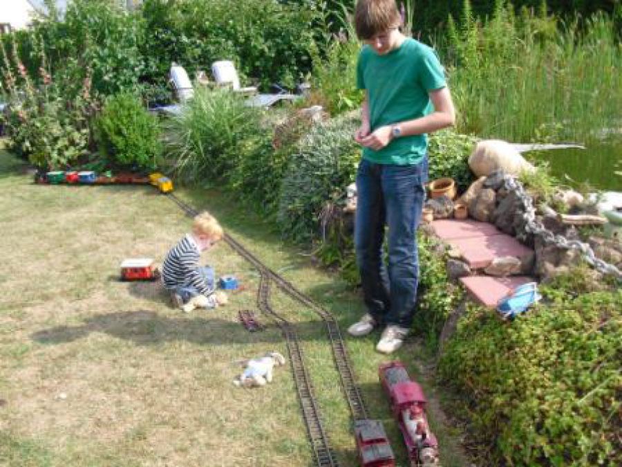 Selbstverständlich gehört auch das Spielen mit der kleinen Bahn zur Lieblingsbeschäftigung im Verein - und zwar nicht nur für die kleinen Mitglieder.